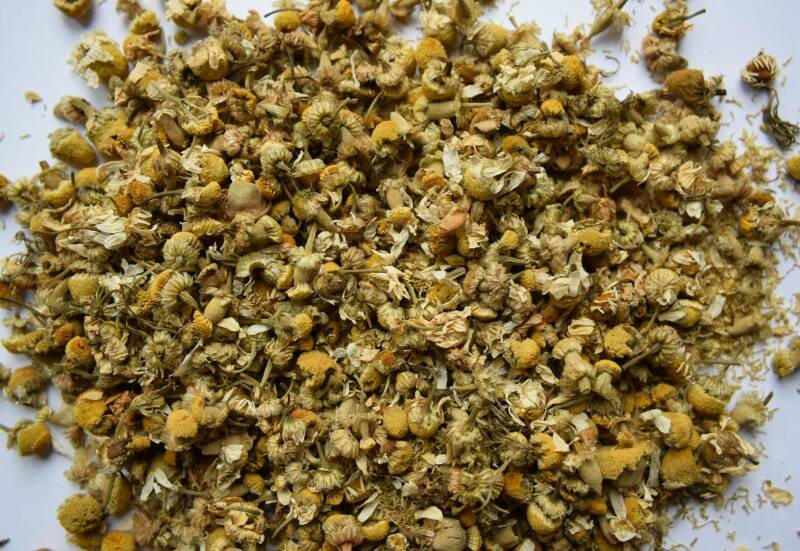 Kamille (gedroogd, zoals op de foto) wordt ingezet bij paarden die nerveus zijn en meer kalmte en ontspanning nodig zijn. Kamille ondersteunt de maag en darmen en bevat gedroogde kamille. Dit is ook een goed kruid om in je wei te hebben staan, zo kunnen de paarden het zelf eten naar behoefte.
